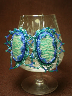 Серьги к предыдущему заказному колье. Заказчица захотела, чтобы сзади не было видно кожи.