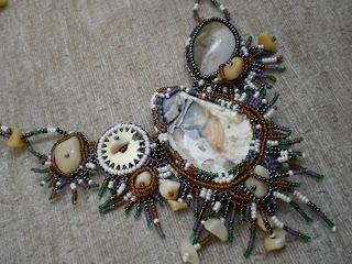 Колье закончила буквально вчера, подложка под кабошонами розового кварца окрашена, поэтому их цвет в колье более насыщенный чем в жизни.